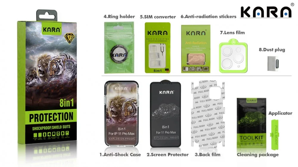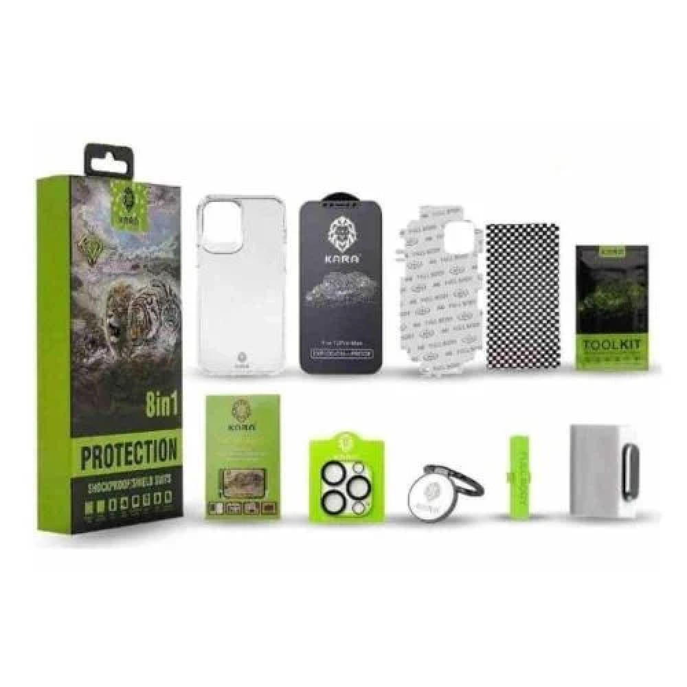 • بكج حماية كارا يقدم لك حماية كاملة لجميع أجزاء هاتفك، حيث يحتوي على حماية أمامية لحماية الشاشة من الخدوش والصدمات، وحماية خلفية تحافظ على الجزء الخلفي للهاتف من الأضرار اليومية، بالإضافة إلى حماية الكاميرا التي تضمن لك الحفاظ على عدسات الكاميرا من الخدوش أو الكسر.