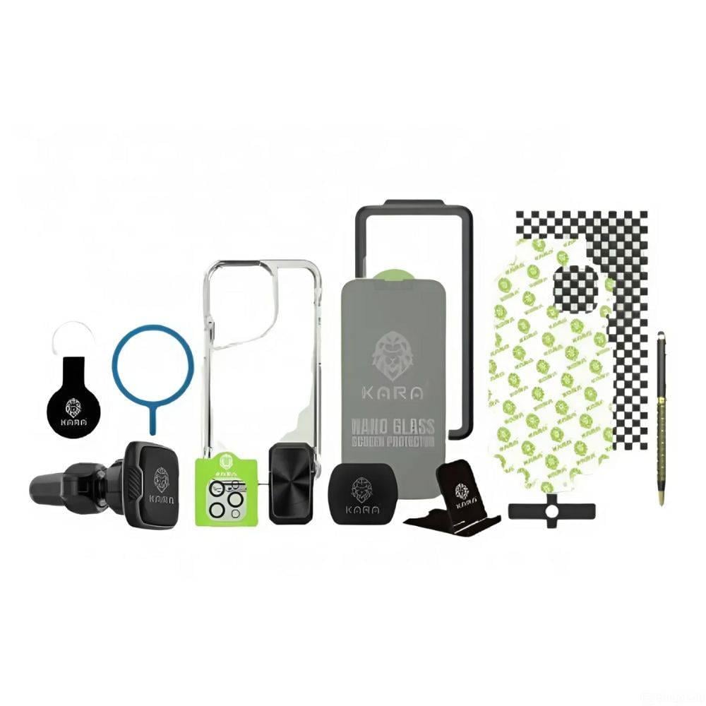 • يتميز بكج حماية كارا بسهولة التركيب، حيث يمكنك تثبيت جميع القطع المرفقة بكل بساطة على جهازك دون الحاجة إلى أدوات إضافية أو مهارات خاصة. كل قطعة مصممة لتناسب بشكل دقيق دون أي تأثير على استخدام الهاتف اليومي.